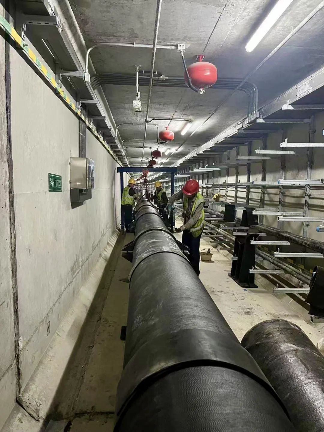 綜合管廊供水管網(wǎng)工程于今年3月份啟動(dòng),總投資700多萬(wàn)元,在管廊運(yùn)營(yíng)管理單位和相關(guān)部門的指導(dǎo)下,施工單位結(jié)合實(shí)際制定施工方案、創(chuàng)新施工方法,專門定做適合地下管廊作業(yè)使用的小型龍門吊和水平運(yùn)輸工具,同時(shí)上足人力,確保材料轉(zhuǎn)運(yùn)入廊不受影響,從而克服了作業(yè)空間狹窄、材料轉(zhuǎn)運(yùn)吊裝等困難,確保了項(xiàng)目安全、有序完成。進(jìn)入管廊可以看到,一條直徑DN400的球墨鑄鐵管道被穩(wěn)穩(wěn)安裝固定在管廊底部基座上,管道兩端將分別與迎賓大道、編鐘大道供水主管網(wǎng)連通,管道通水后城南片區(qū)供水將形成環(huán)狀管網(wǎng),可有效緩解片區(qū)供水壓力不均衡的現(xiàn)狀,將為城南片區(qū)供水服務(wù)及后期開發(fā)建設(shè)提供堅(jiān)實(shí)保障。