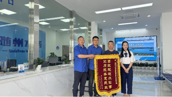 近日,湖北共富食品有限公司將一面印有“高效規(guī)范辦實(shí)事 優(yōu)質(zhì)服務(wù)惠民生”的錦旗送到湖北省隨州市水務(wù)集團(tuán)隨縣供水公司,對(duì)該公司高效快捷的服務(wù)表示由衷的肯定和誠摯的謝意。