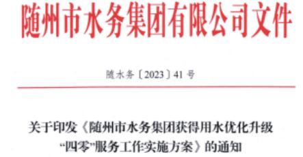 2.關(guān)于印發(fā)《隨州市水務(wù)集團(tuán)獲得用水優(yōu)化升級“四零”服務(wù)工作實施方案》的通知
